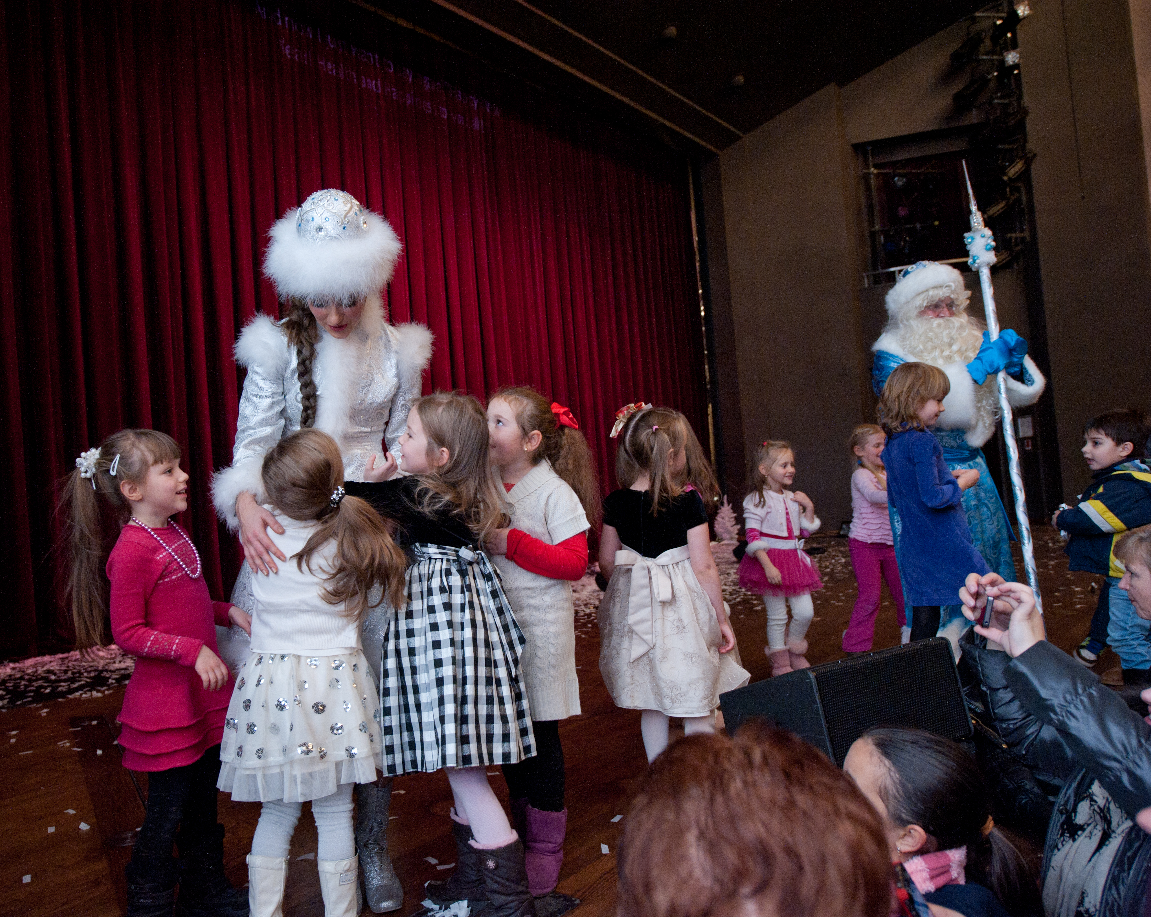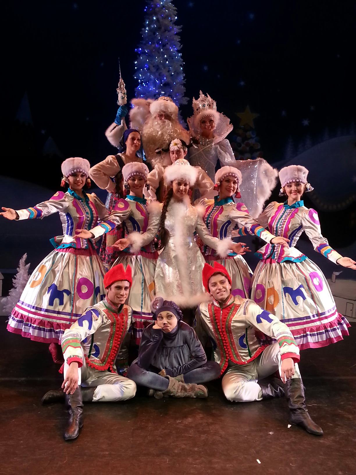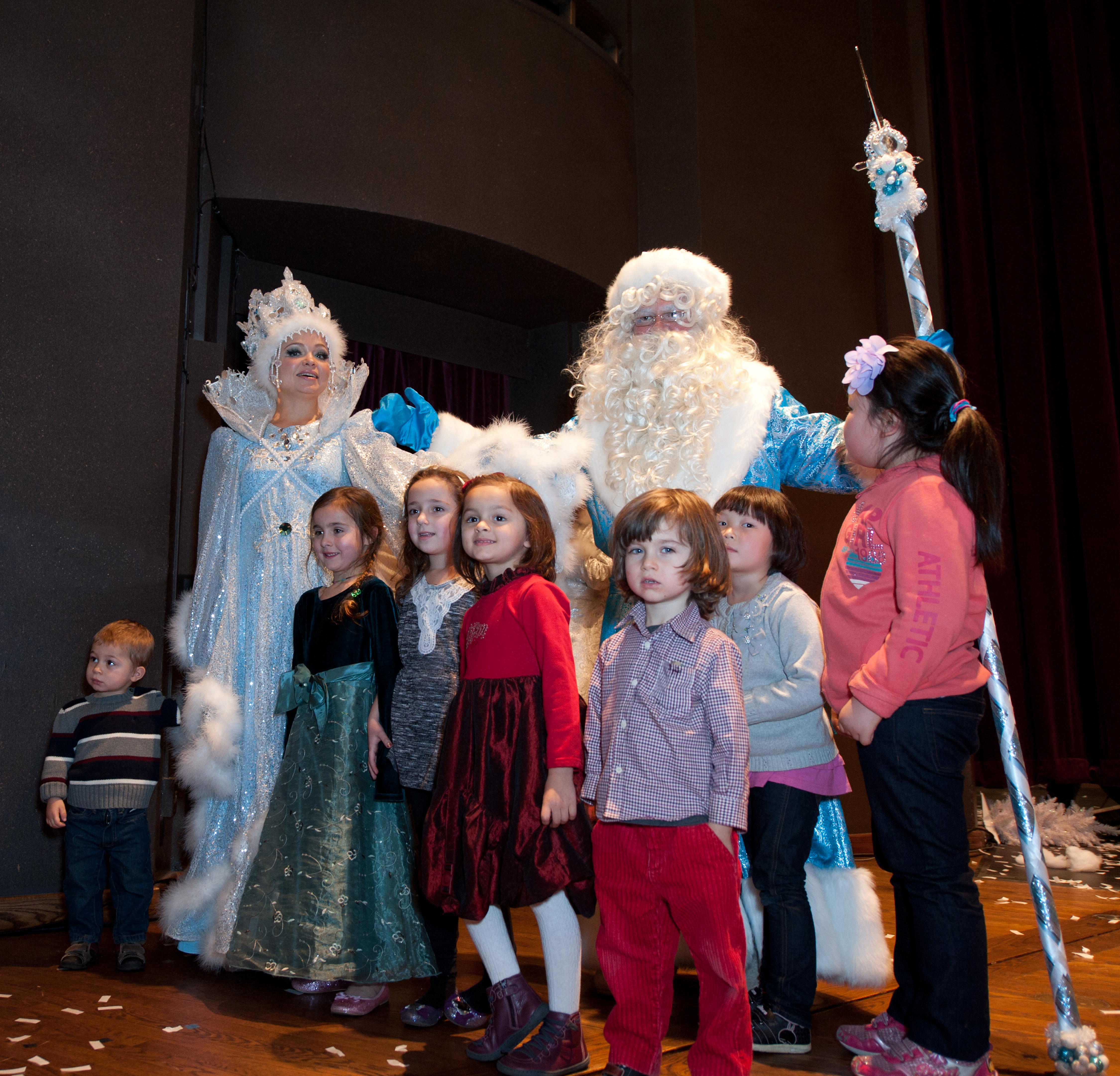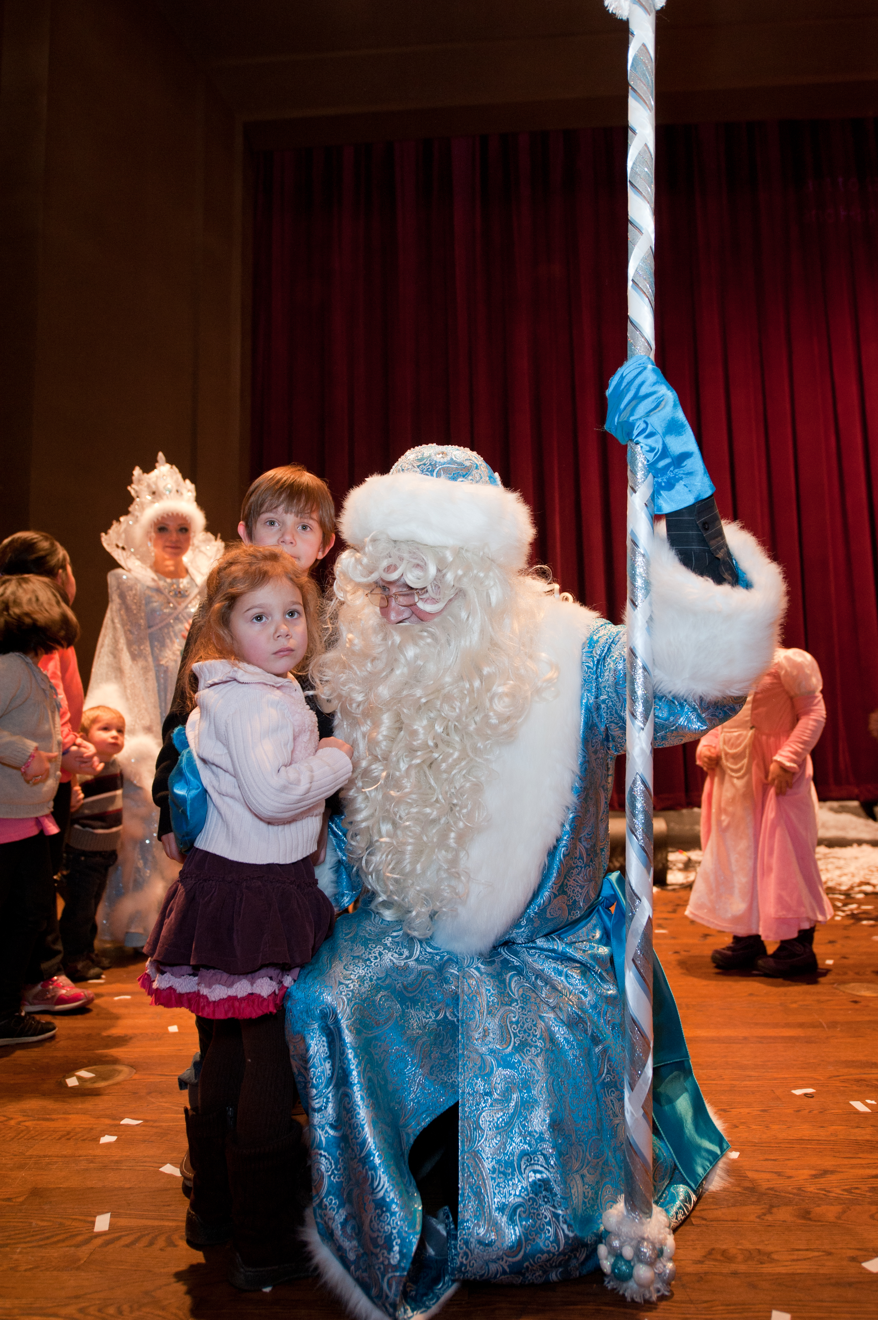 On December 22, 2012 Russian folk charachters Ded Moroz and Snegurochka were a part of big Russian Winter production in Brooklyn, New York. The show took place at the Whitman Theatre of the Brooklyn College. Russian Winter Musical Fairytale Dance & Music Show "The Snow Maiden" transported the audience to a 19th century Russian village, where a kind but poor hardworking girl, mistreated by her evil step family, is about to undergo a magical transformation. "Mother Winter", "Grandfather Frost", the Winds, the Blizzards and a humble mouse restored justice, put the step-sisters to the test and choosed the one truly worthy of becoming Grandfather Frost's beloved grand daughter, "The Snow Maiden" (Snegurochka). Дед Мороз и Снегурочка были частью новогоднего зимнего шоу «Матушка-Метелица» в Бруклине. Концерт состоялся в Whitman Hall at Brooklyn College, 2900 Bedford Ave. Brooklyn, NY 11210. Однажды в русскую зиму с трескучими морозами и белоснежными елями на землю снизошла Матушка-Метелица, дочка Деда Мороза. Добродушная Мышка уговаривает Матушку-Метелицу навести порядок на земле и вознаградить по заслугам трудолюбивую падчерицу Дуняшу, которую обижают её Мачеха и сводная сестра Малаша. Дед Мороз должен выбрать Снегурочку и зажечь новогоднюю ёлку.