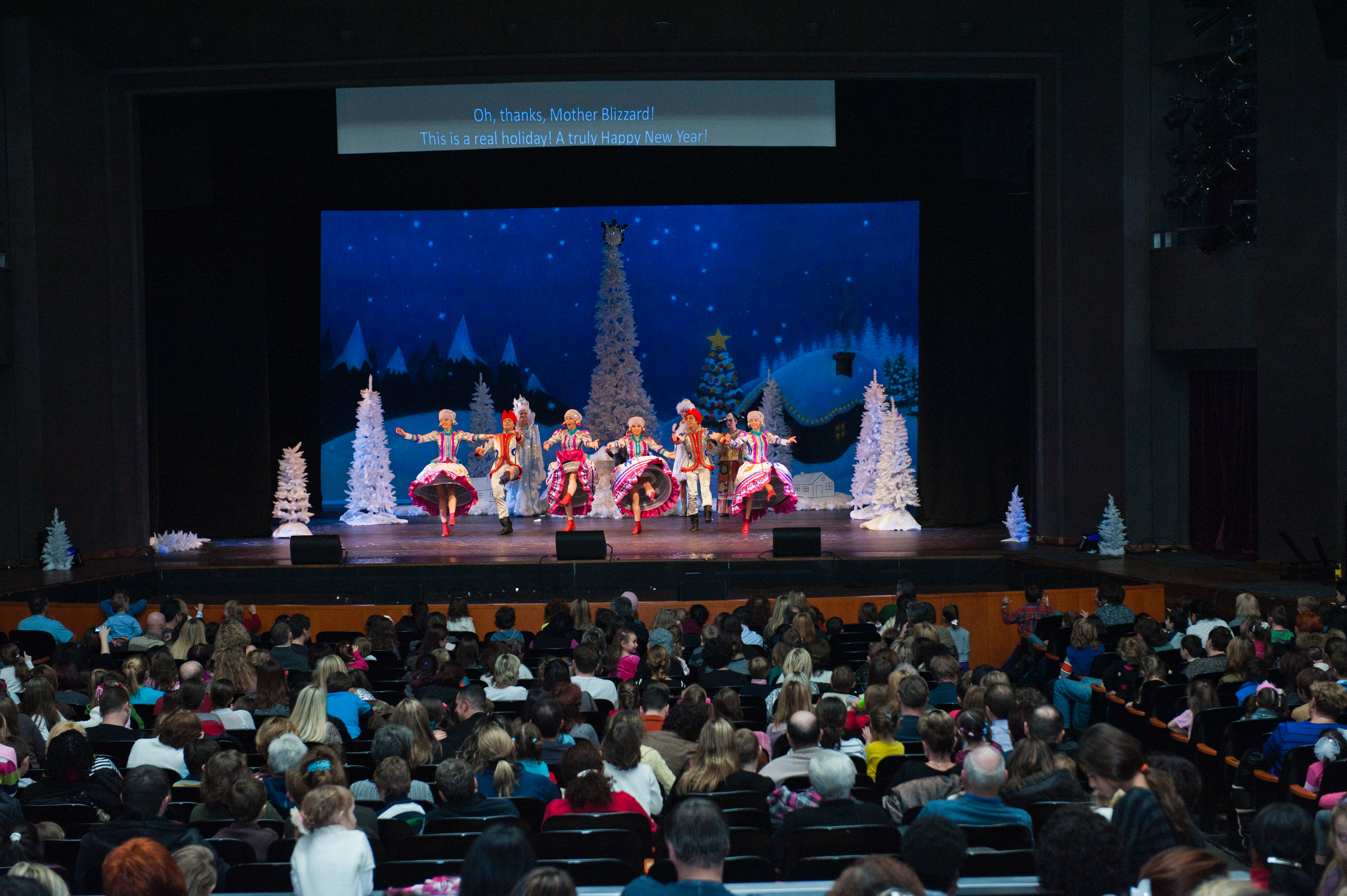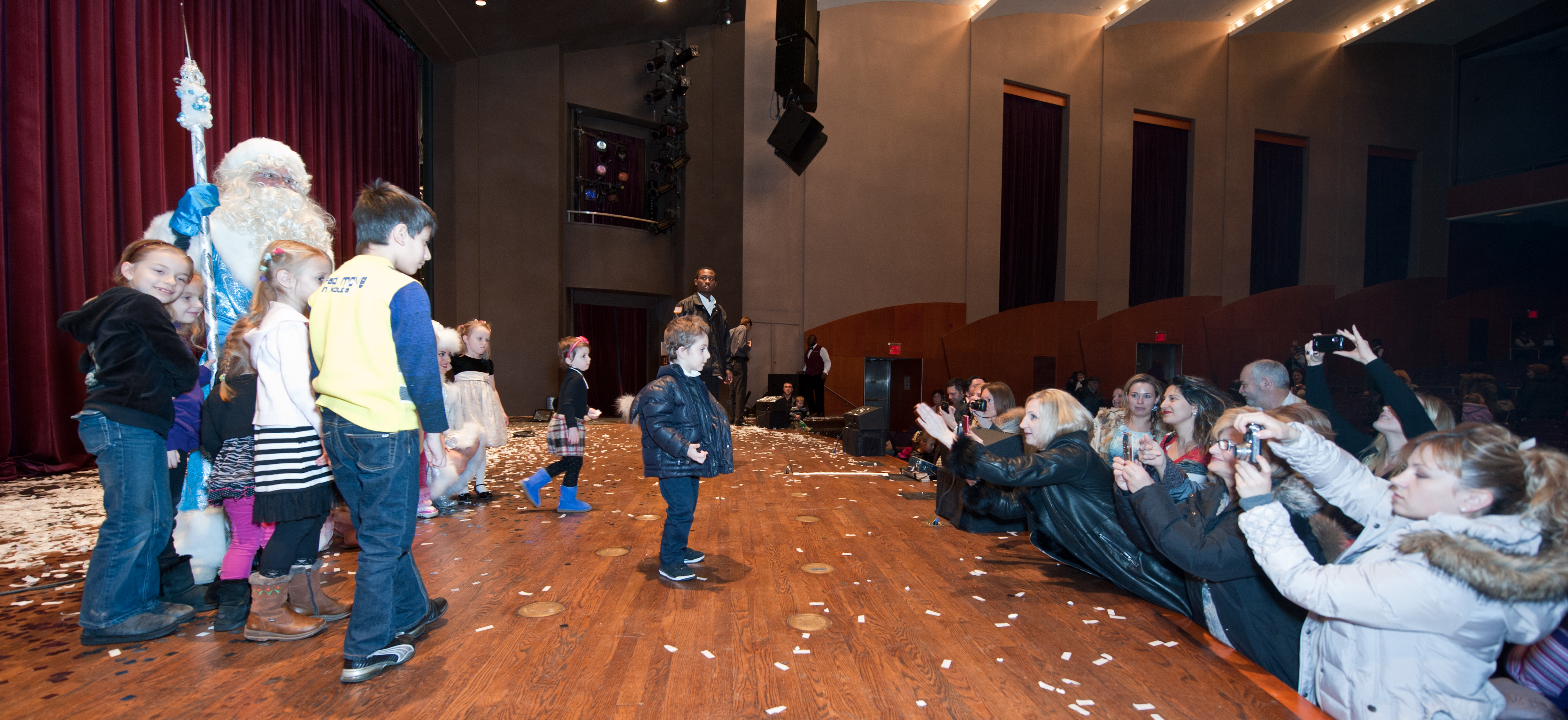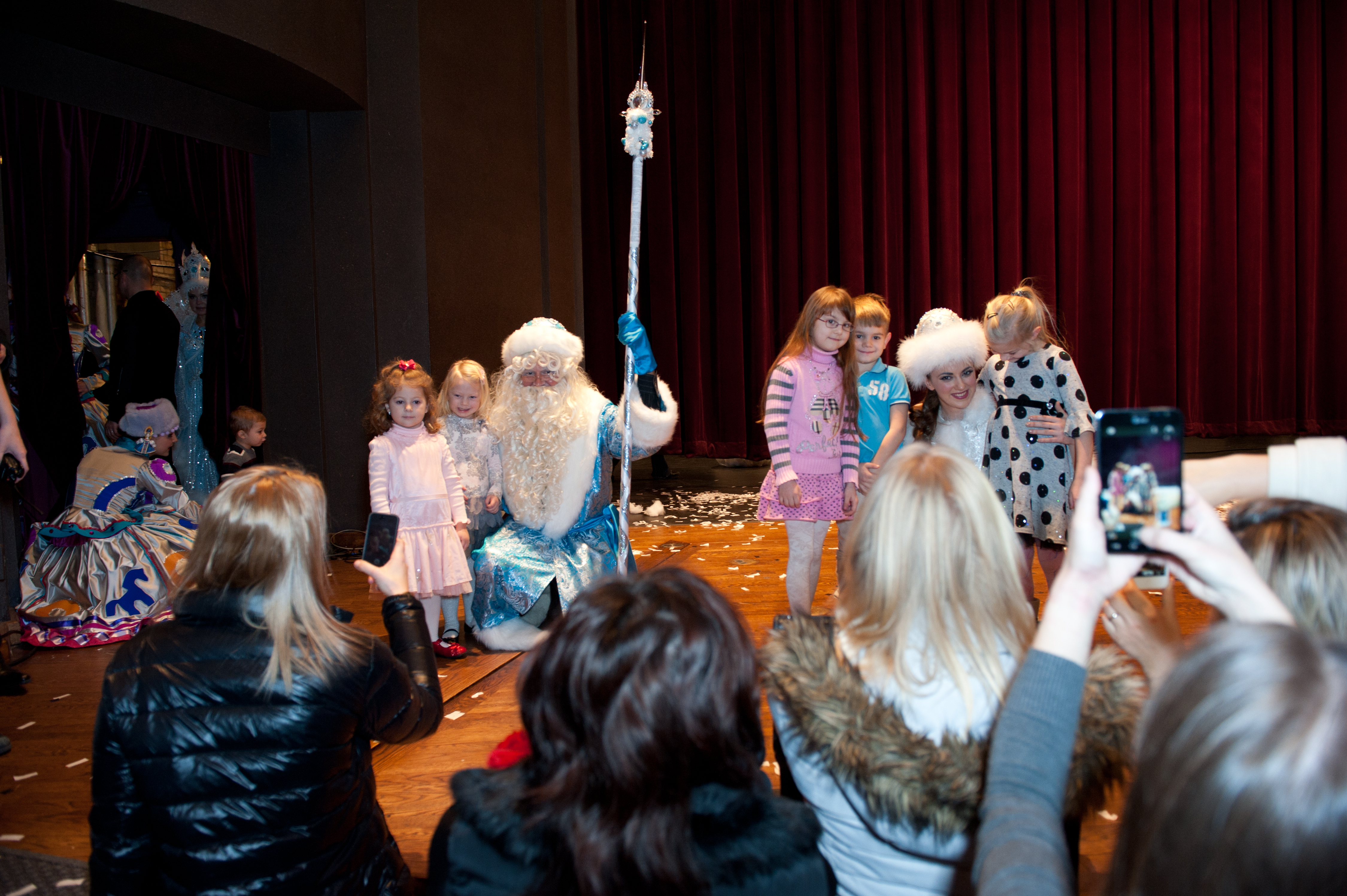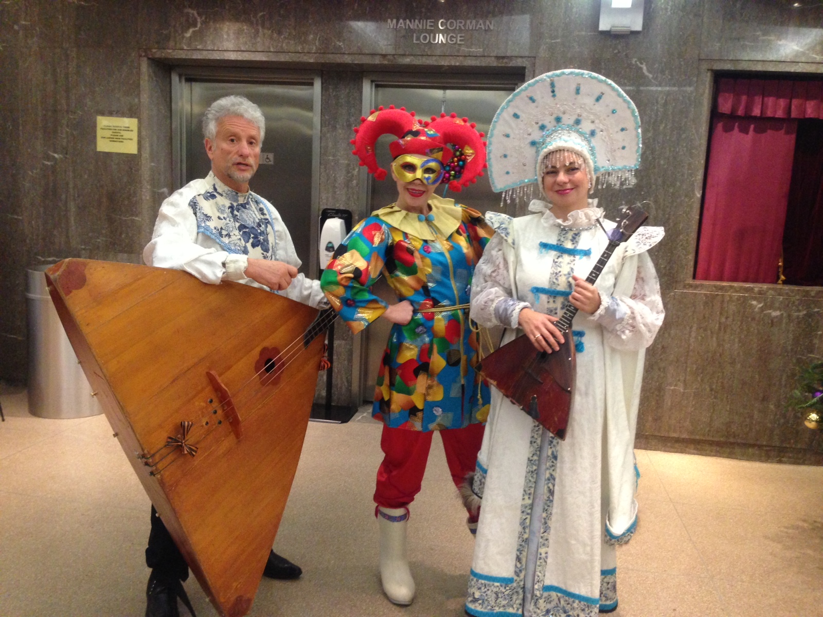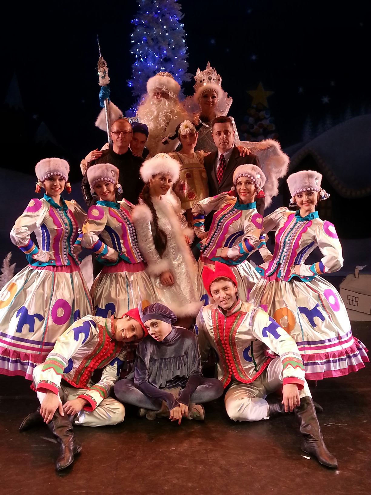 On December 22, 2012 Russian folk charachters Ded Moroz and Snegurochka were a part of big Russian Winter production in Brooklyn, New York. The show took place at the Whitman Theatre of the Brooklyn College. Russian Winter Musical Fairytale Dance & Music Show "The Snow Maiden" transported the audience to a 19th century Russian village, where a kind but poor hardworking girl, mistreated by her evil step family, is about to undergo a magical transformation. "Mother Winter", "Grandfather Frost", the Winds, the Blizzards and a humble mouse restored justice, put the step-sisters to the test and choosed the one truly worthy of becoming Grandfather Frost's beloved grand daughter, "The Snow Maiden" (Snegurochka). Дед Мороз и Снегурочка были частью новогоднего зимнего шоу «Матушка-Метелица» в Бруклине. Концерт состоялся в Whitman Hall at Brooklyn College, 2900 Bedford Ave. Brooklyn, NY 11210. Однажды в русскую зиму с трескучими морозами и белоснежными елями на землю снизошла Матушка-Метелица, дочка Деда Мороза. Добродушная Мышка уговаривает Матушку-Метелицу навести порядок на земле и вознаградить по заслугам трудолюбивую падчерицу Дуняшу, которую обижают её Мачеха и сводная сестра Малаша. Дед Мороз должен выбрать Снегурочку и зажечь новогоднюю ёлку.
